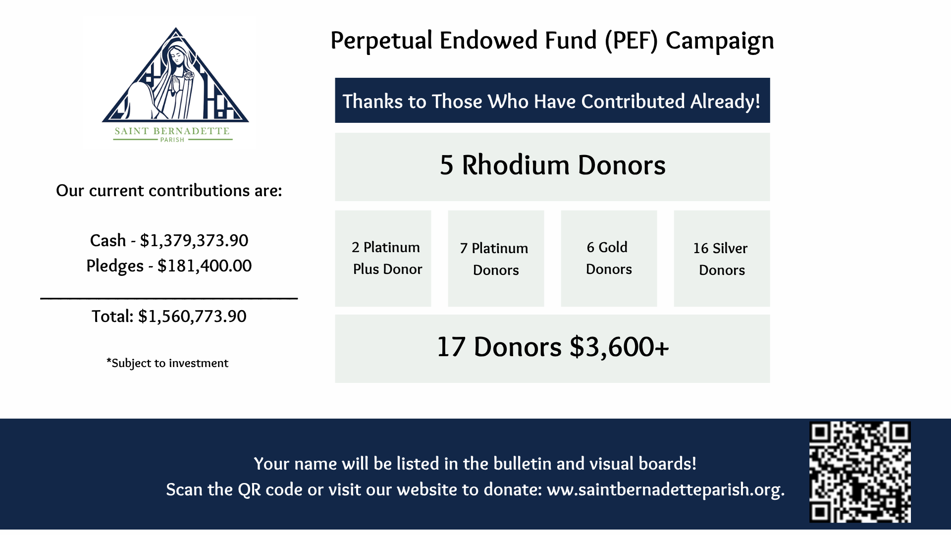 As the pastor of St. Bernadette, I can attest to the wonderful generosity, and hospitality of the people of St. Bernadette.
