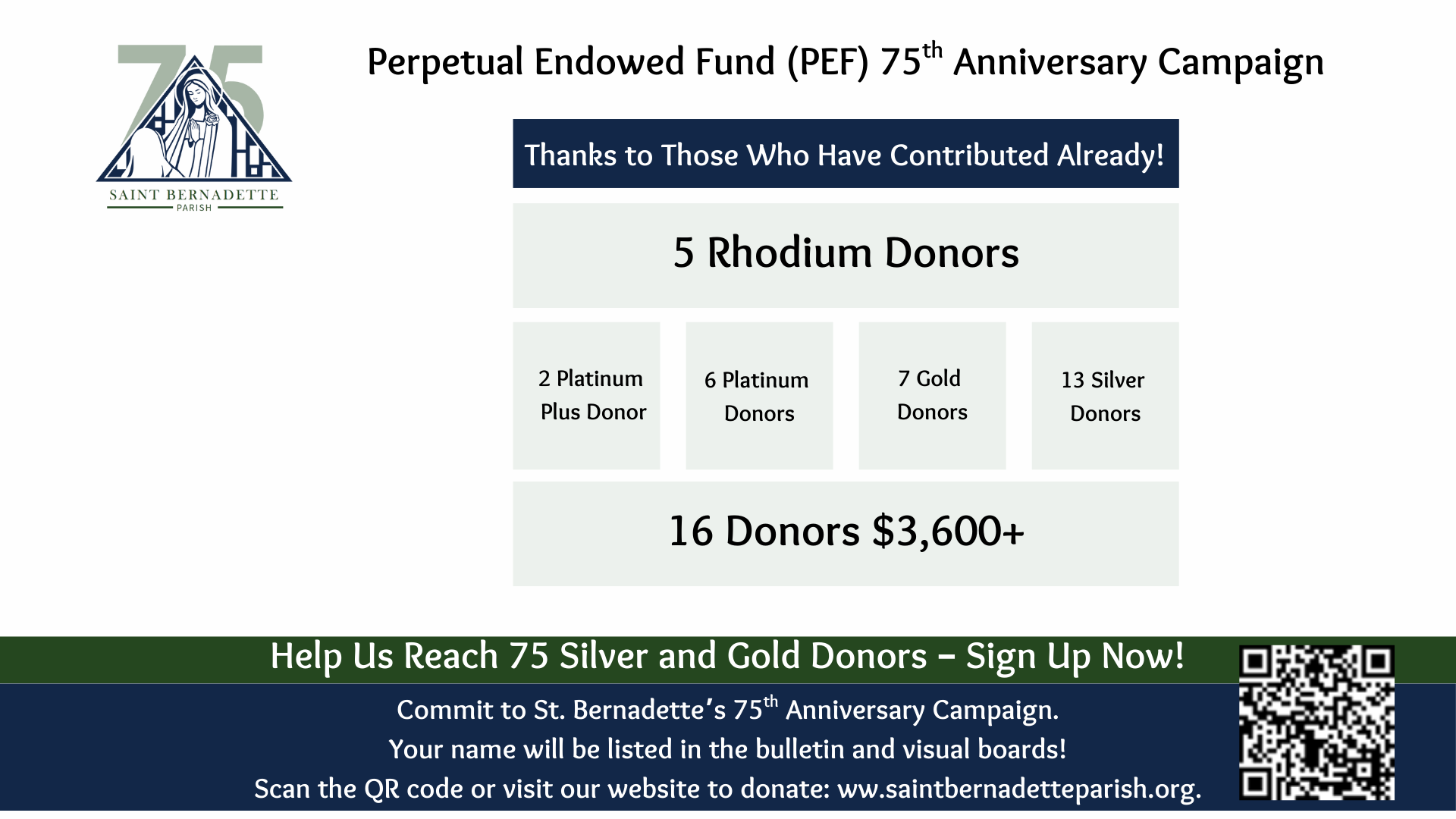 As the pastor of St. Bernadette, I can attest to the wonderful generosity, and hospitality of the people of St. Bernadette.